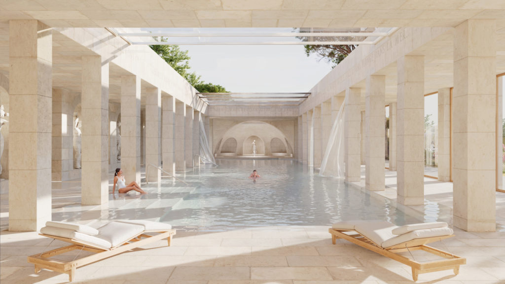 Amelia Tavella also fosters a meaningful dialogue between architecture and literature, with writer Nina Bouraoui, notably on the O’balia Thermal Spa project which will open in 2026. This collaboration has enriched the overall concept since the project’s inception. In an architectural work inspired by the site’s ancient past, Nina Bouraoui’s words are inscribed in the building’s materiality. As in Roman temples, the writer’s sentences are carved into the stone enhancing the structural elements.