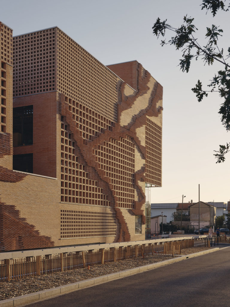 Associating tradition and modernity, strength and softness, audacity and sobriety, the architect works on the materiality and purity of the gesture until she achieves a form of obviousness. For each building, she imagines a protective envelope, combining sober lines and craftsmanship excellence. While the Convent Saint-François is dressed in copper, the façade of the Simone Veil school bears the marks of passing time. Created in collaboration with visual artist Pauline Guerrier, this bas-relief in bricks forms a dynamic “skin” that comes to life with the solar cycle and its shifting shadows.